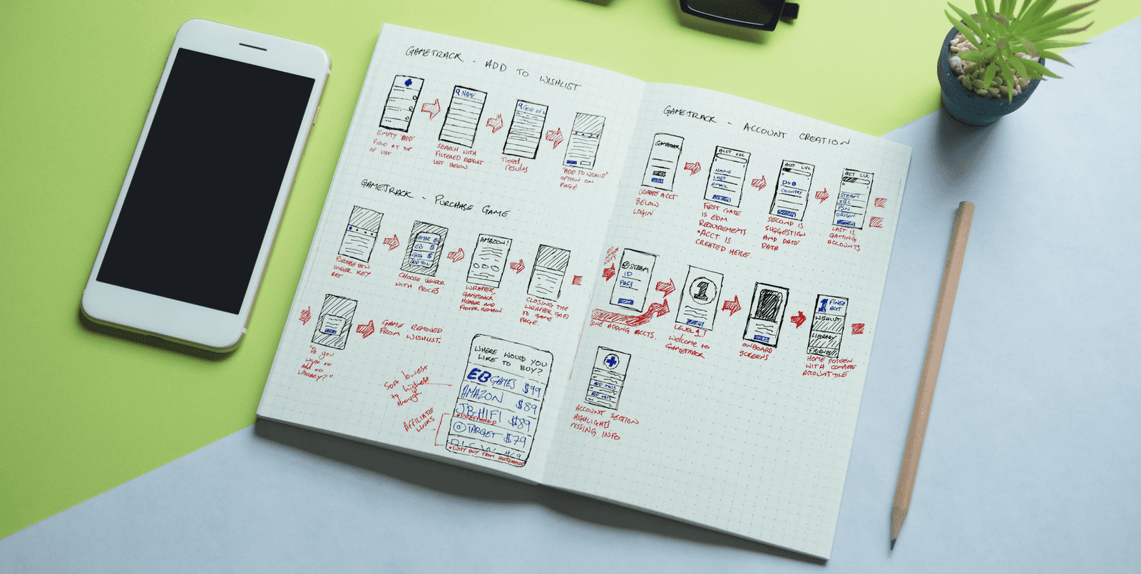 GameTrack started life as a few sketches in my notebook. As this was initially just a project for myself, I drew out user flows according to how I would like to use the product.