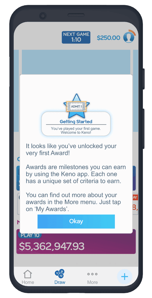 From speaking to customers, we discovered there was an appetite for more gamified rewards within Keno - giving customers goals to achieve and strive for beyond monetary rewards was something that they expressed was an exciting idea.