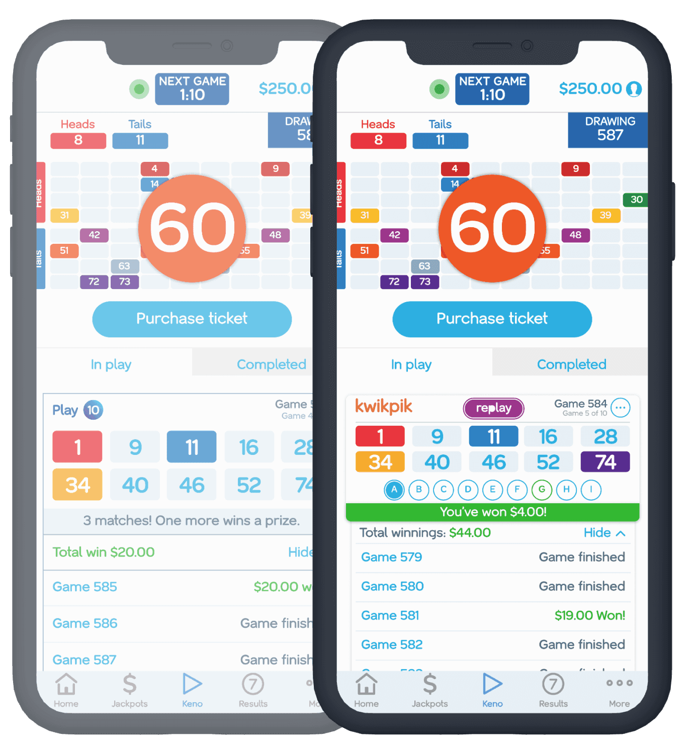The Keno app had been built quickly and efficiently, but the UI wasn't providing an experience that users were excited about, or that they found particularly easy to use. One of my first projects at Keno was to redesign the main touchpoints of the UI to enhance the look, feel, and engagement of the app.
