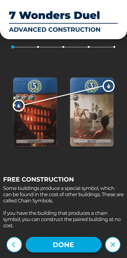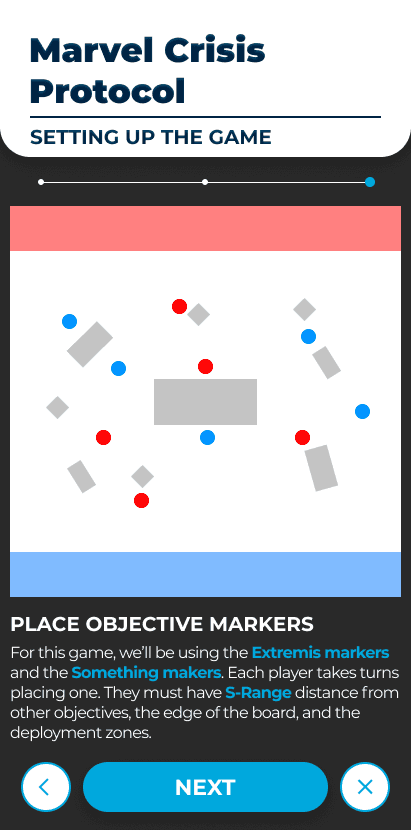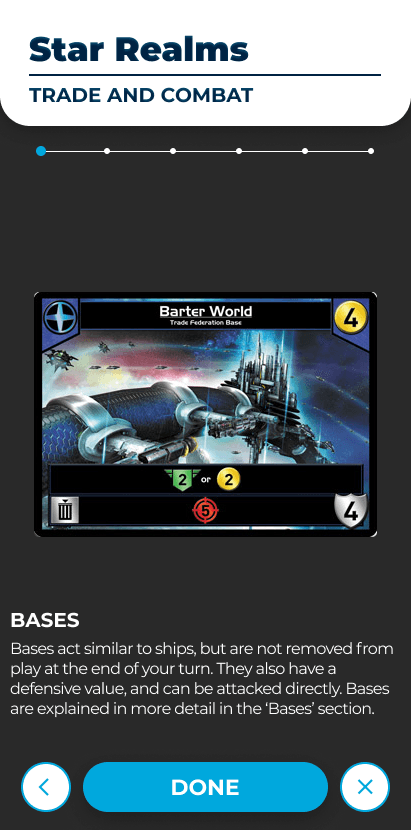 We learned a lot from creating the content for our prototype, and took those lessons to upgrade the look and feel of our instructions. Instead of straight screenshots, we were now using high-resolution digital assets, and each screen has a customized set of graphics built specifically to aid in learning each specific rule or concept.