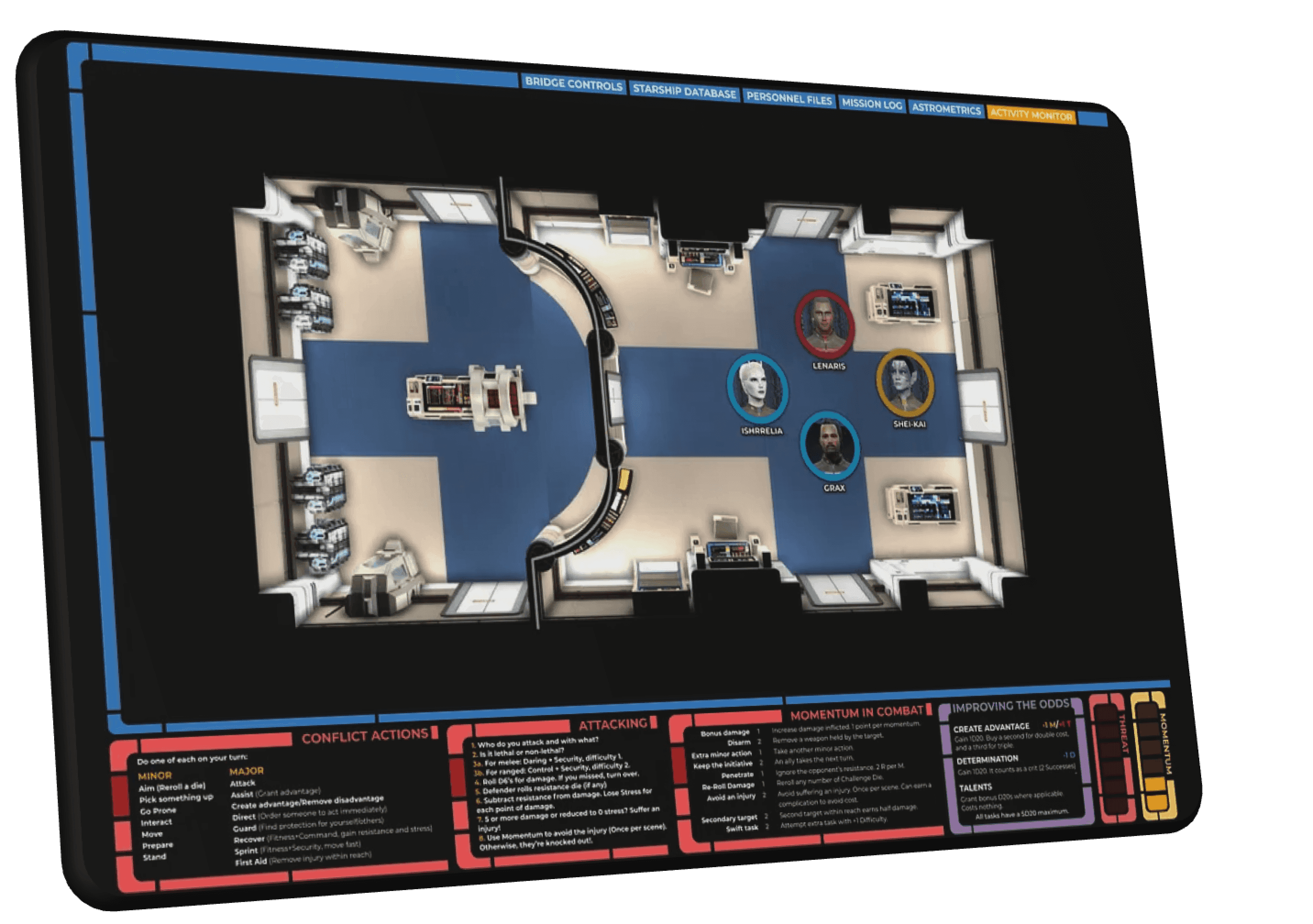 In Star Trek Adventures, different players are responsible for different sections of the ship. I gave each role it's own UI, and used the colors from the show to make it easy to differentiate between them.