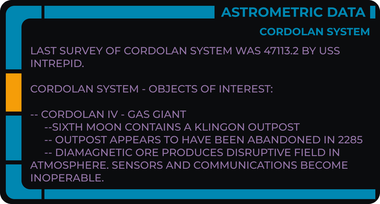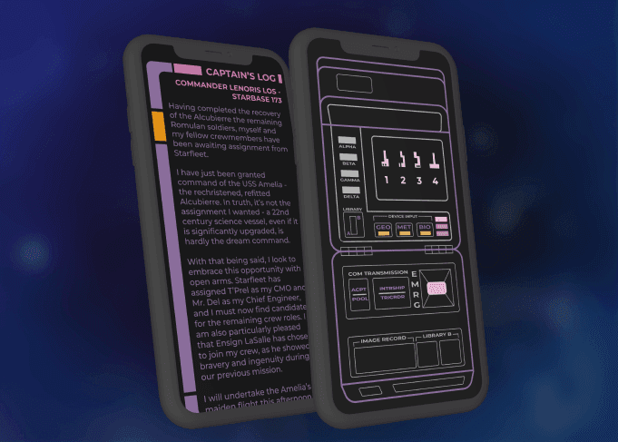 As our adventures continued, I created many UI elements for the players to explore and interact with to keep the game immersive and maintain that classic Star Trek feel. Below I've included just a few quick examples.