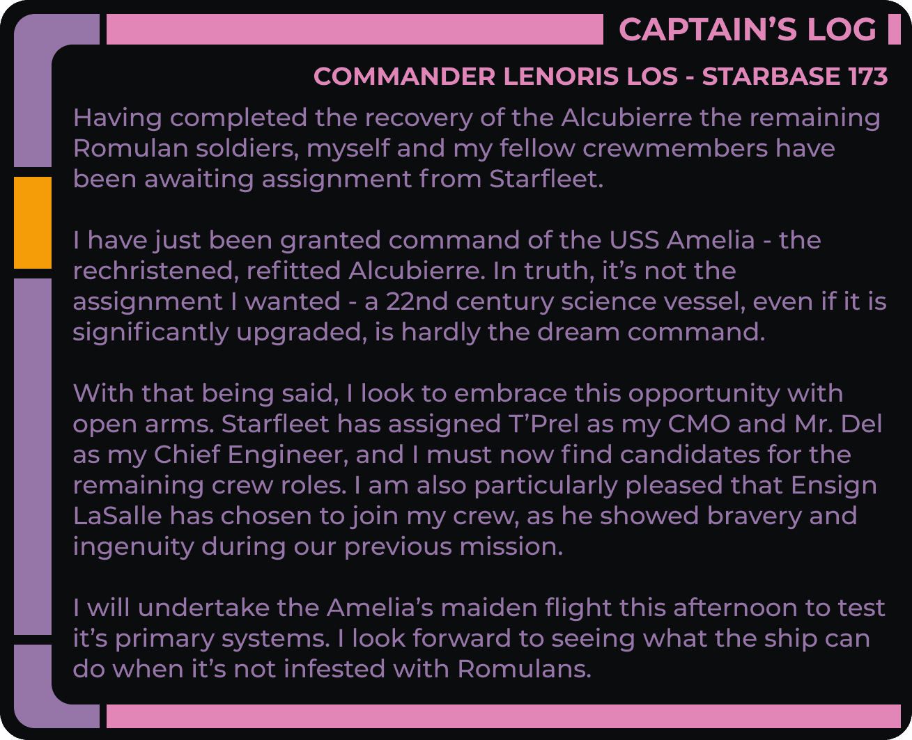 A huge part of any Star Trek story is the operation of your Starship. I wanted to use this element of gameplay as an opportunity to create something truly diagetic - it should feel like you're on the bridge, at your console, running the starship.