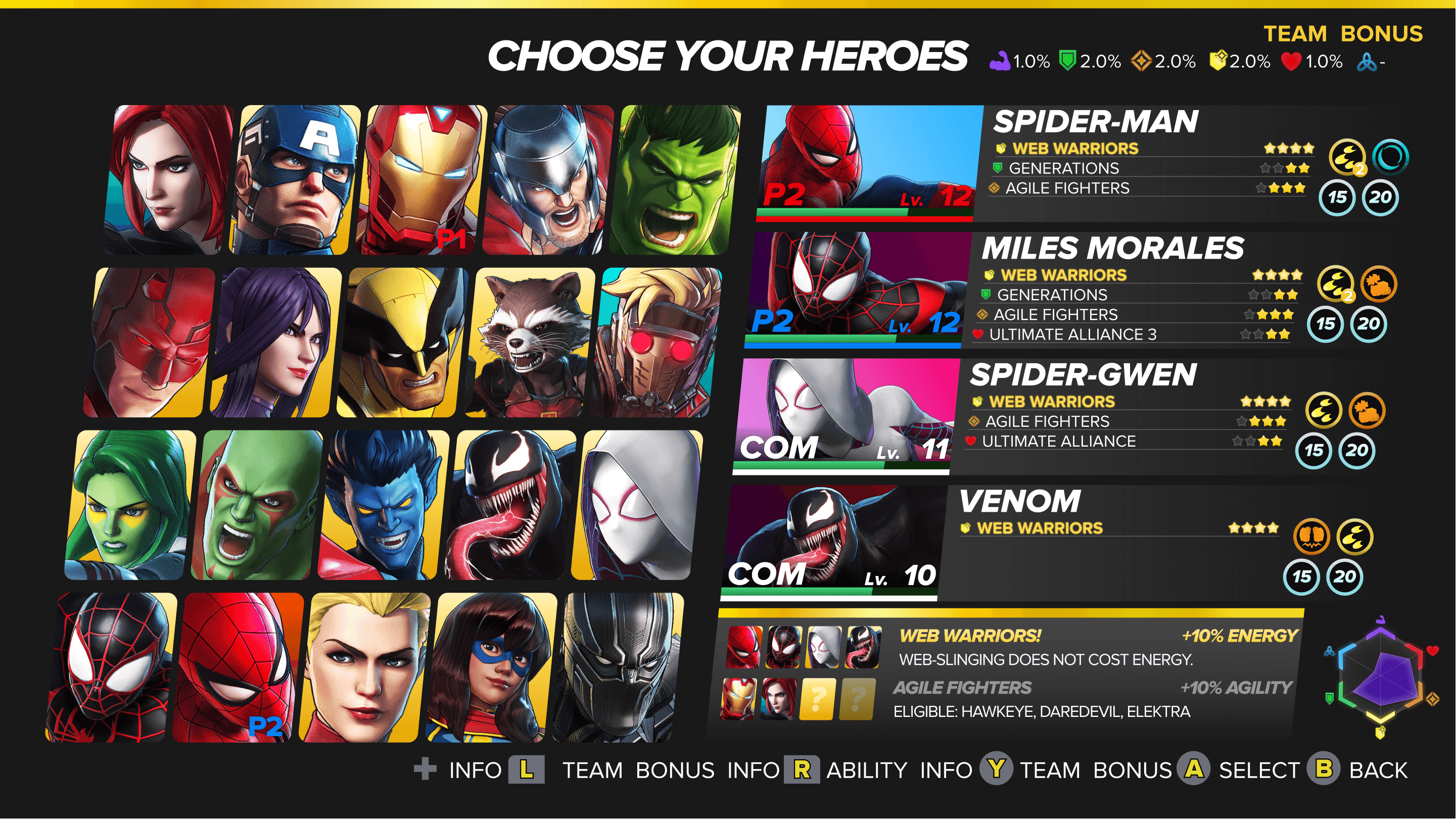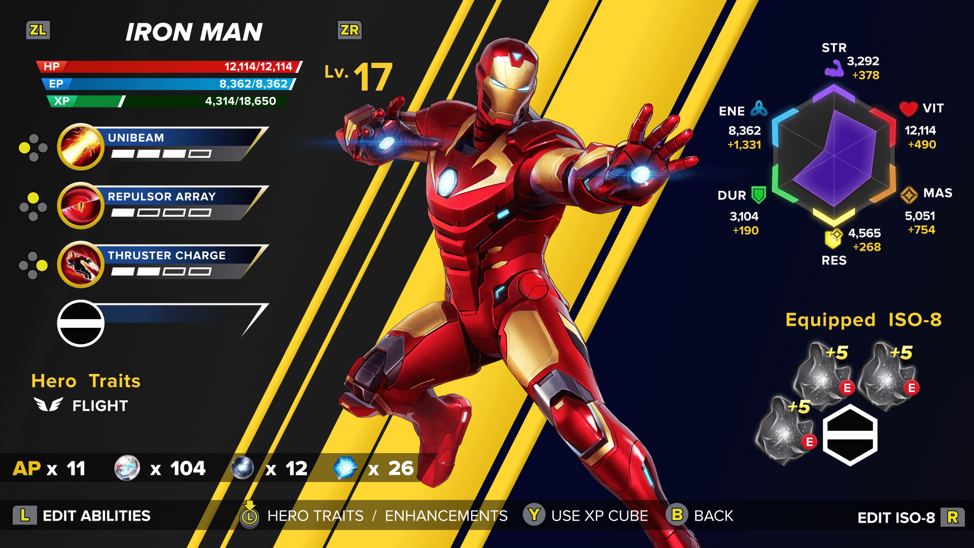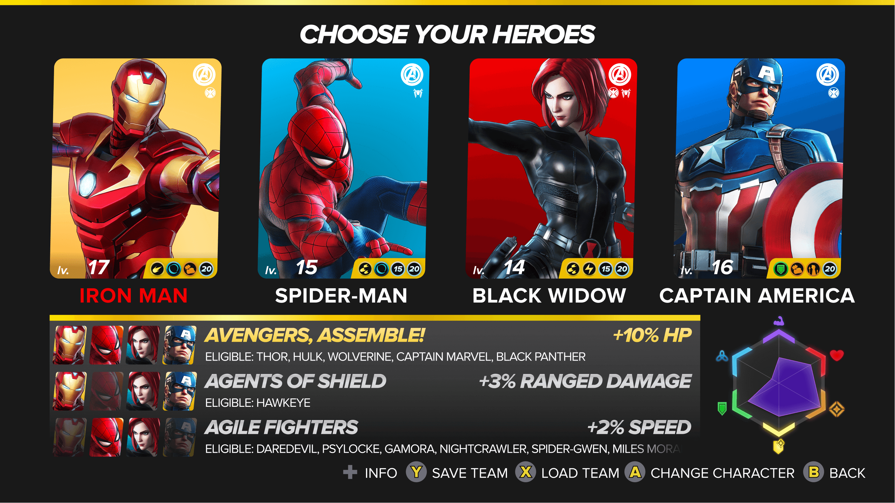 Marvel: Ultimate Alliance 3 was a very popular, successful game upon it's release. However, it's UI left a little to be desired. I wanted to create a UX that gave the player more information, while still giving a fair amount of real estate to the character art.