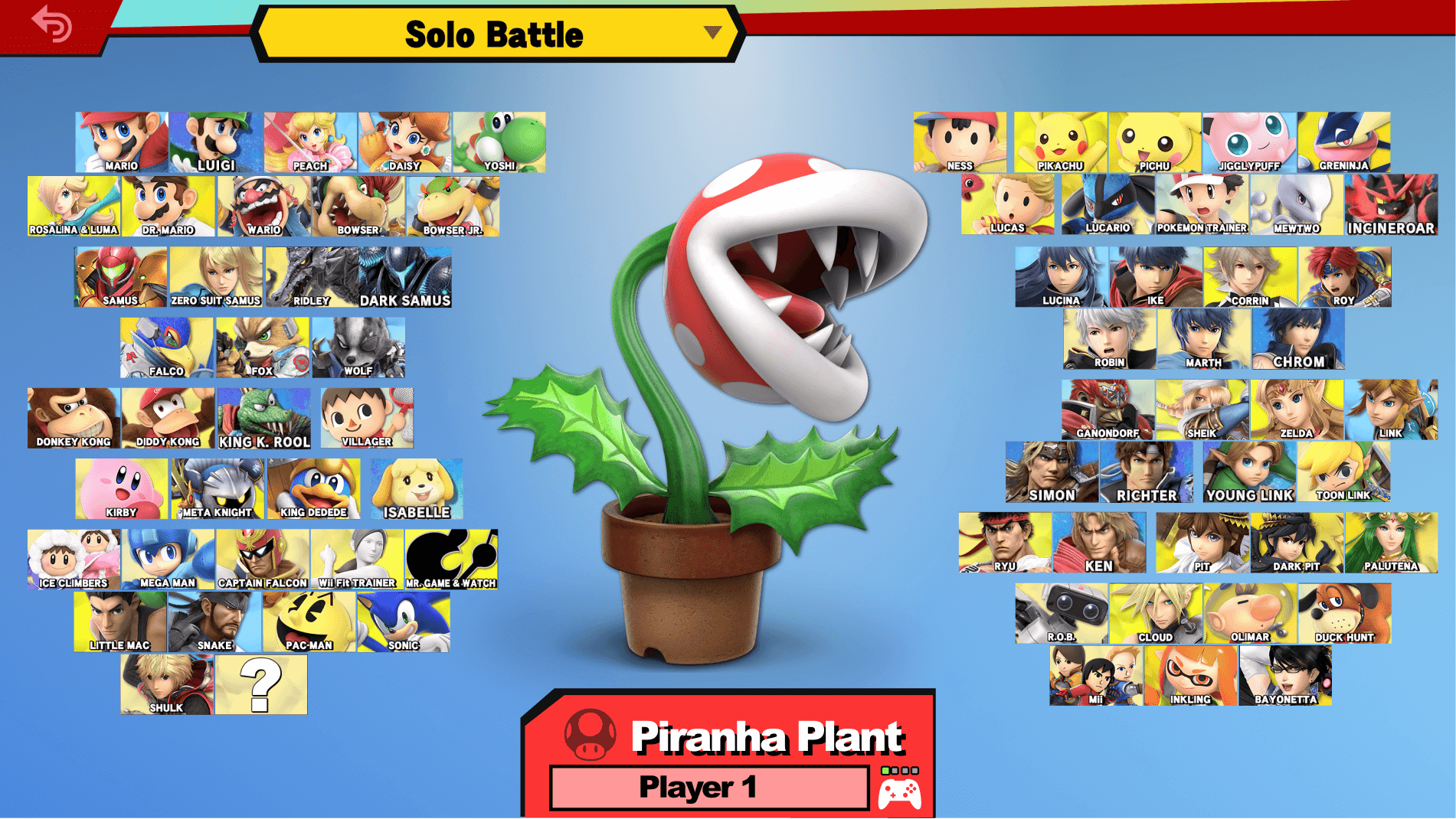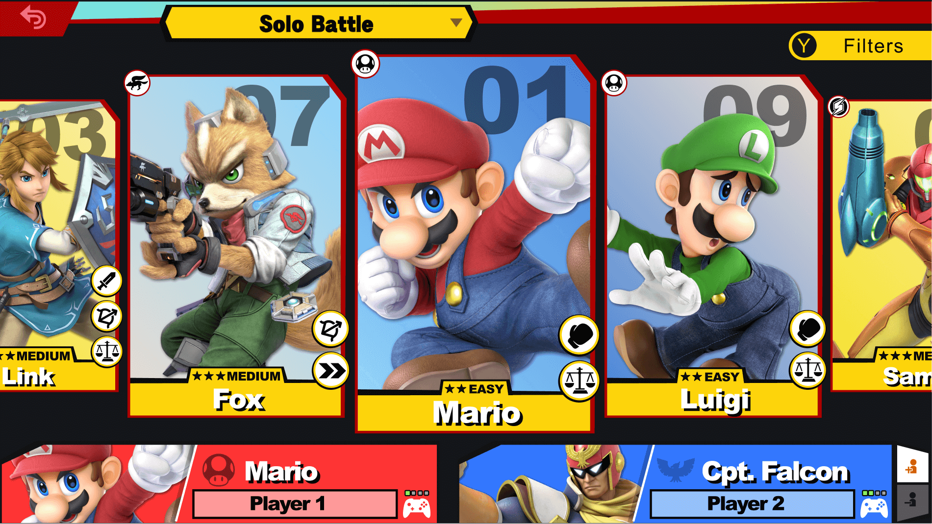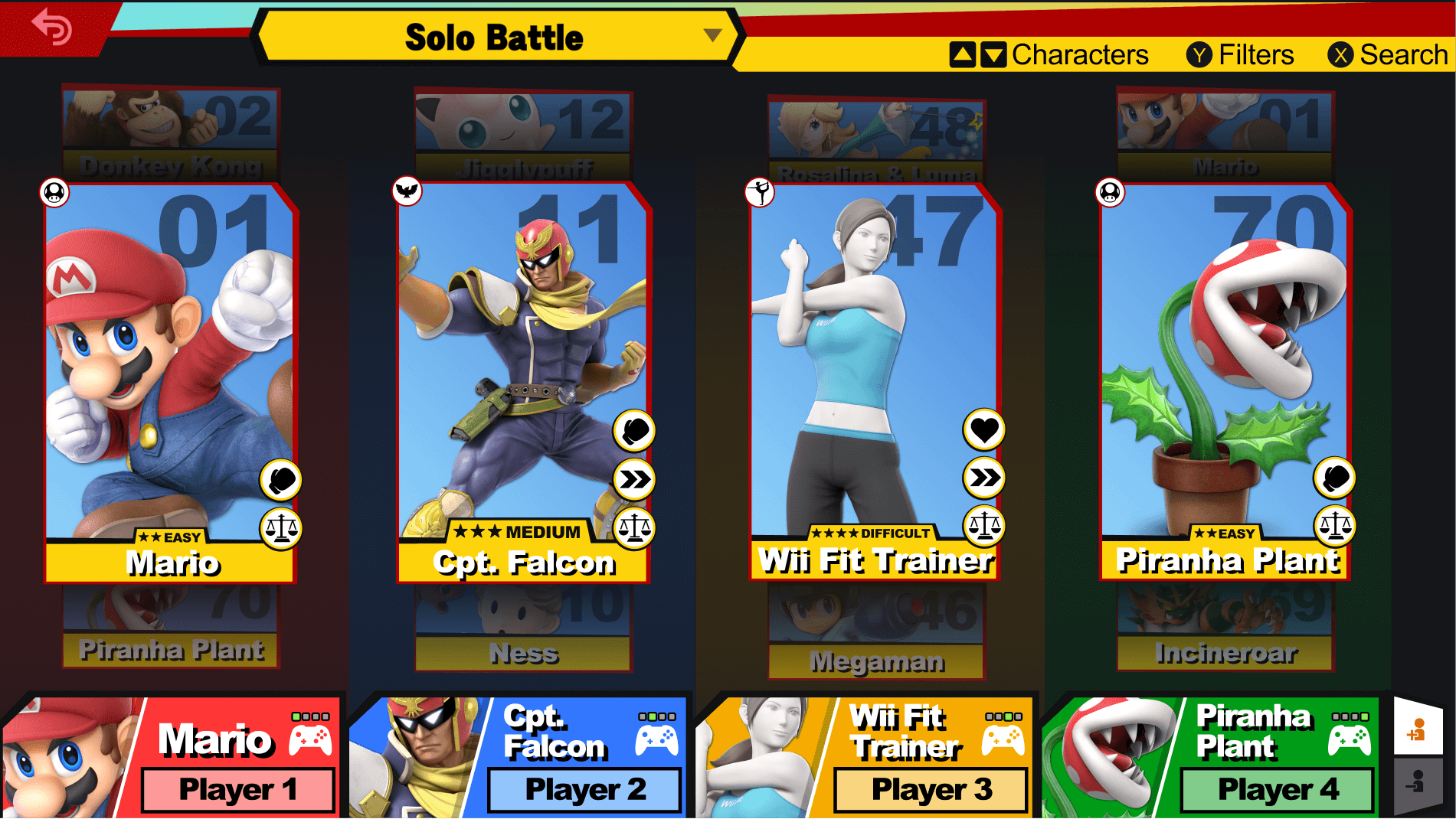 Super Smash Brothers: Ultimate had a major issue when it came to character selection. The characters - of which there are 74 - are sorted in an arbitrary order, making it extremely difficult for new players to find the character they'd like to play as. I decided to explore how the UI could be modified to make it easier for players to find the characters they're looking for.